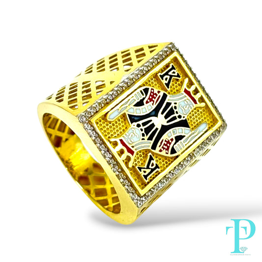 14K “KING GAMBLER” MENS GOLD ENAMELED RING