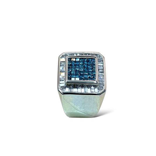 14KT BAGUETTE AND BLUE DIAMOND SQUARE TOP RING 2.60CTW