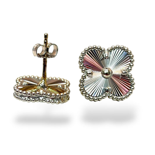 18KT GOLD FLUTED CLOVER EARRINGS(WHITE GOLD)