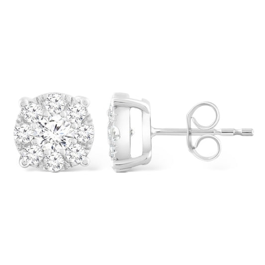 1.00 CT 14KT WHITE GOLD DIAMOND CLUSTER STUDS