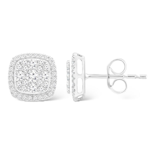 2.00CTW 14KT WHITE GOLD SQUARE DIAMOND CLUSTER UNI-SEX EARRINGS