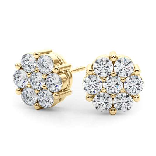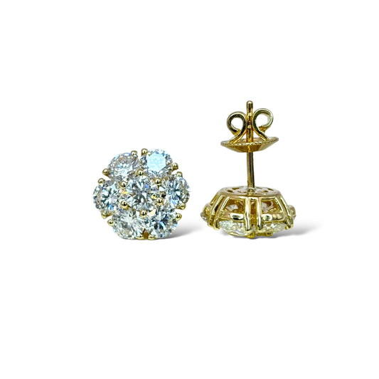 14KT YELLOW GOLD 4.25CTW CLUSTER DIAMOND STUDS