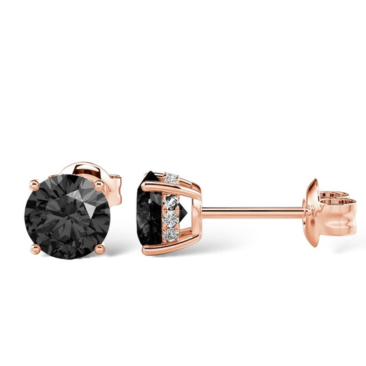 14Kt ROSE GOLD 2.00CTW NATURAL BLACK ROUND-CUT DIAMOND STUD EARRINGS