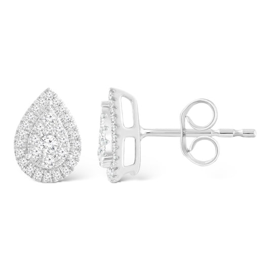 .90CTW 14KT WHITE GOLD IGI TEARDROP DIAMOND CLUSTER UNI-SEX STUD EARRINGS