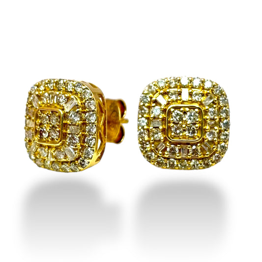 14KT YELLOW GOLD SQUARE DIAMOND CLUSTER STUDS 1.00CT
