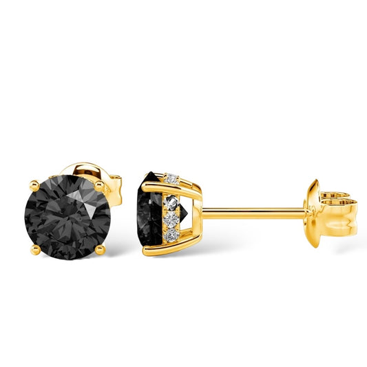 14Kt YELLOW GOLD 2.00CTW NATURAL BLACK ROUND-CUT DIAMOND STUD EARRINGS