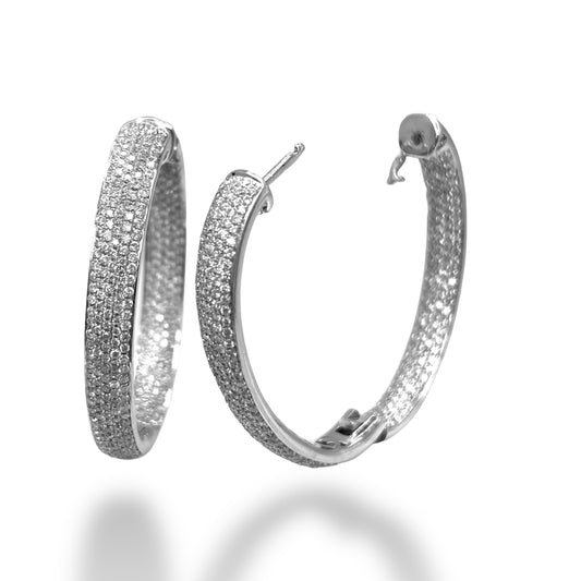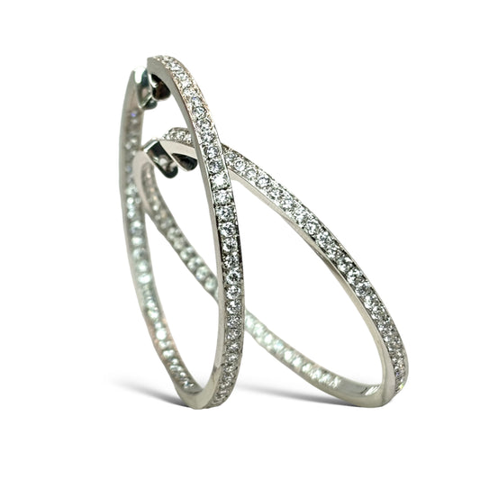 18KT WHITE GOLD PAVE DIAMOND HOOPS 4.00CT