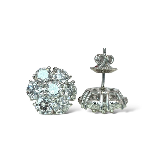 14KT WHITE GOLD 4.97CTW CLUSTER DIAMOND EARRINGS