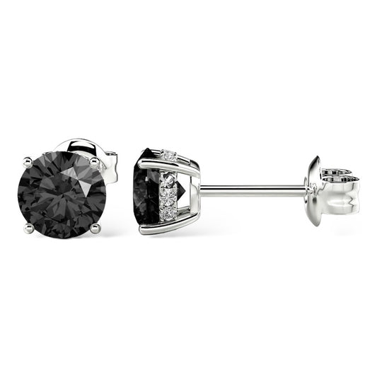14Kt WHITE GOLD 2.00CTW NATURAL BLACK ROUND-CUT DIAMOND STUD EARRINGS